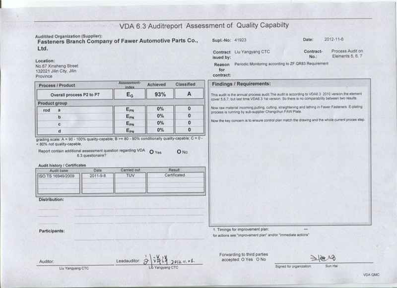 下一篇:A级供应商审核报告 一汽大众平台